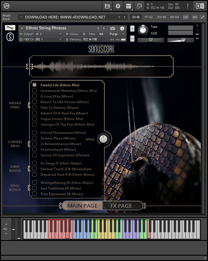 To merge the powers of both traditional and phrase-based sampling, Erhu legato und Esraj sustain instruments have been included. They can be used to either to connect or to advance existing phrases, or even to craft your own ones. Be prepared to implement your creative vision with ease into your scores.