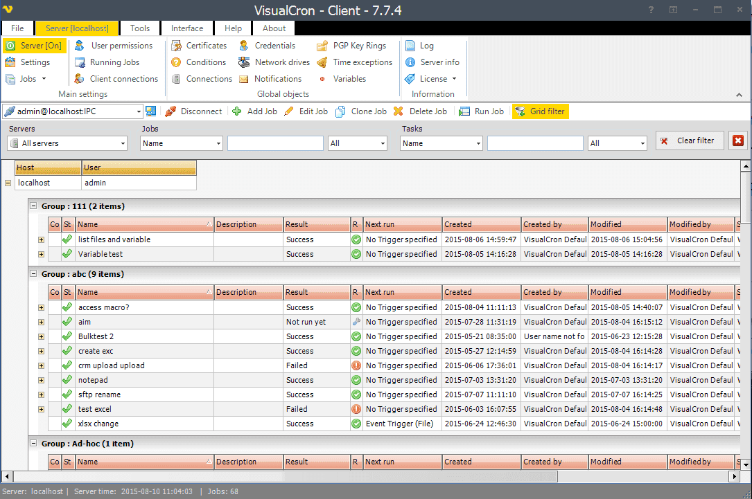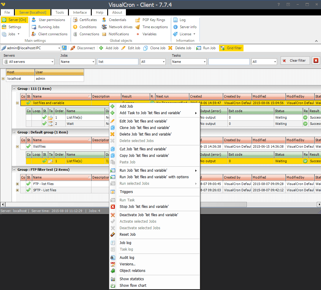 VisualCron Pro is an automation, integration and task scheduling tool for Windows. VisualCron is a complex automation utility that delivers a user-friendly, yet feature-rich working environment for easy task scheduling. The plethora of options it comes with makes it stand out, and the array of predefined tasks it bundles helps you automate repetitive or time-consuming tasks without any programming or scripting knowledge.