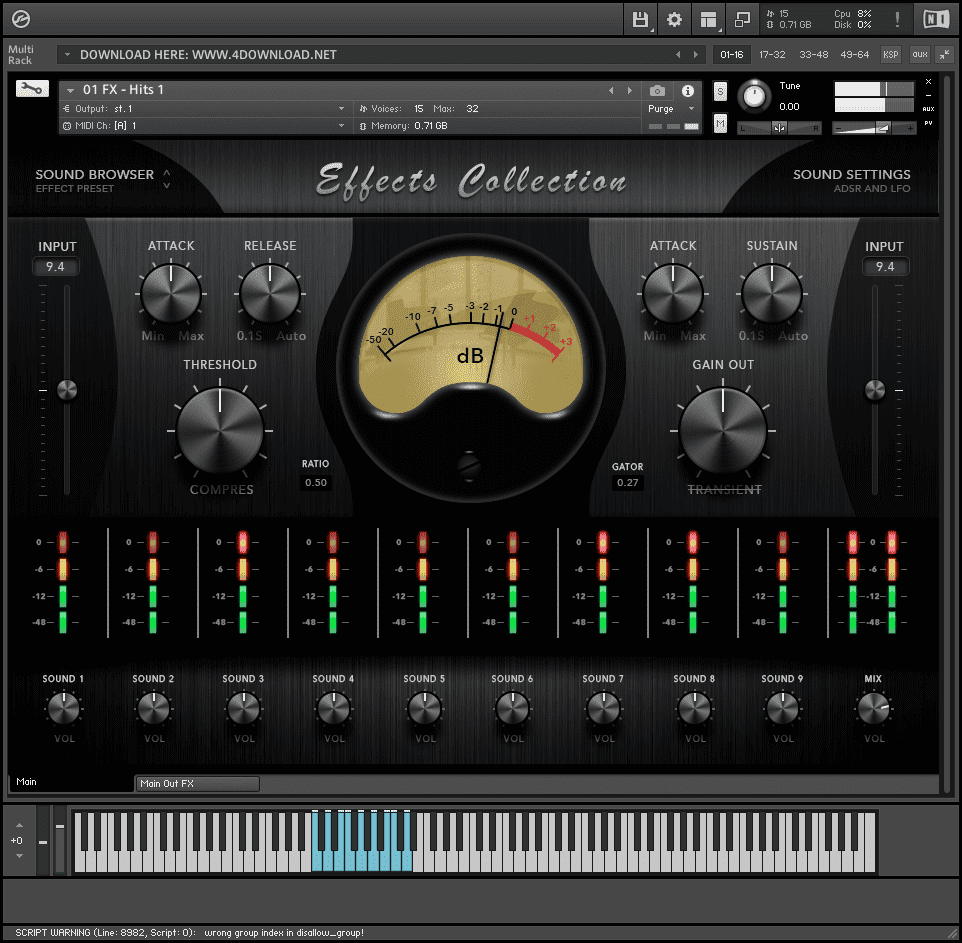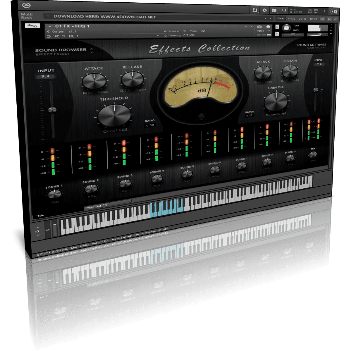 You have a total of 1080 source sounds to explore, transform, combine, and create your own.Includes sounds of space, textures & hits processed on digital effects Compressor controls: attack, release threshold, ratio, input level Transient control: attack, sustain, output gain, input level. Sound Browser and 9 channel Mixer for changing sound and fx settings on each sound source.Volume control, pan, mute & solo of each channel Simple selection of sound sources and mixing to get new ones.Envelope and LFO settings for each channel.