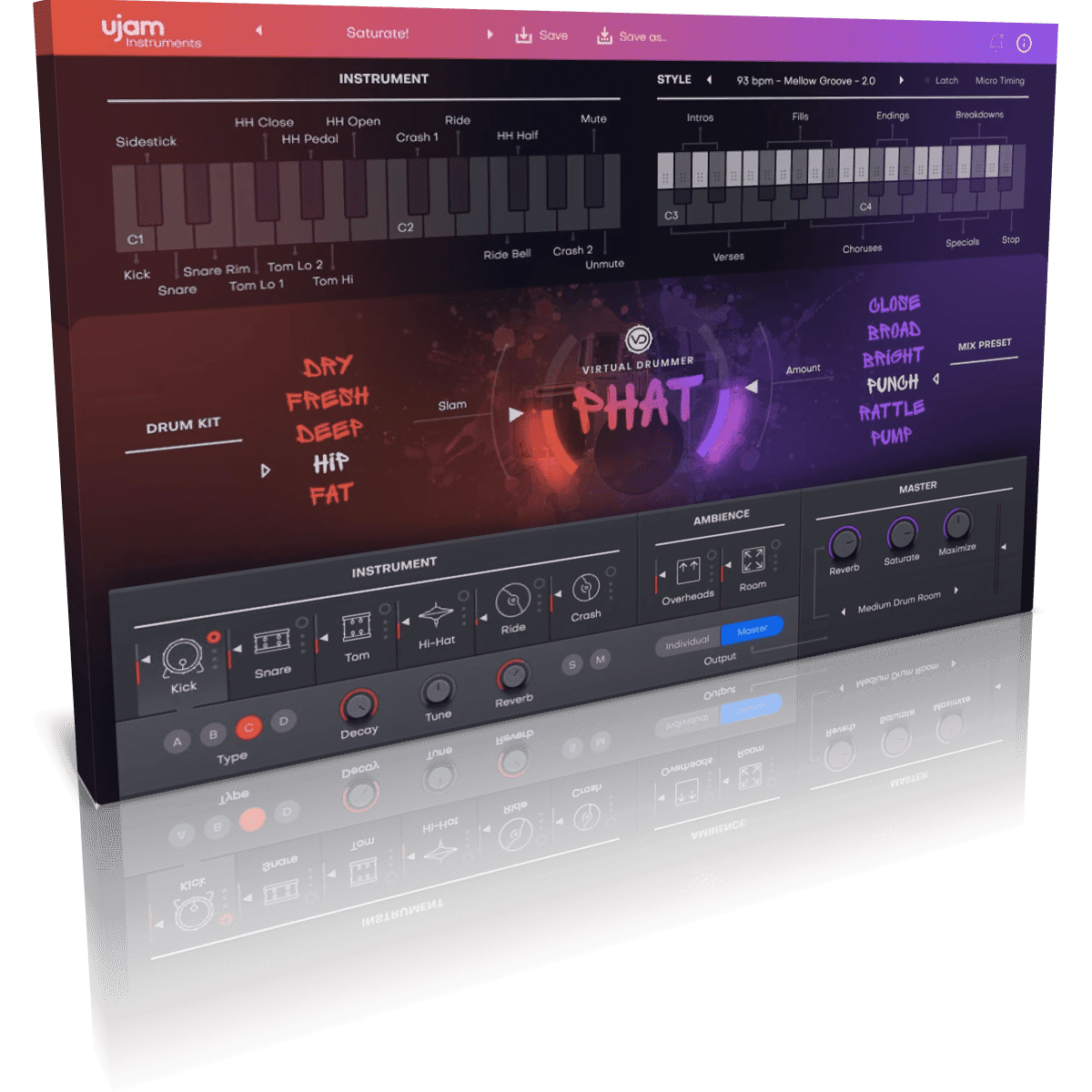 Perfect for grooving, funky and urban styles, PHAT is the perfect studio companion for music producers of all skill levels. The very gentle learning curve, a trademark of all UJAM Instruments plug-ins, means beginners and professionals can quickly lay down amazing sounding beats with no previous drumming experience.