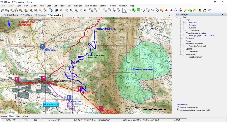 OkMap is an interactive software which allows you to work on your computer screen with web maps or digital maps that you have either bought or scanned. OkMap can also import vectorial data from the most common formats and DEM data relevant to height information. Through these maps, you can organize your paths by creating waypoints, routes and tracks on your computer monitor, and upload this data to your GPS. OkMap sets automatically altitude data and estimates travel times. Furthermore OkMap provides you also with autorouting and geocoding functions.