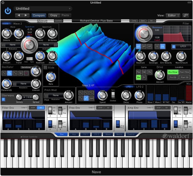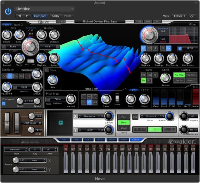 Anyone at all familiar with Waldorf software instruments will immediately feel right at home with the typical Waldorf workflow where sound shaping modules are always directly accessible and all Arpeggiator, Envelopes, Effects, and Modulation Matrix management controls are only one push of a virtual button away. Nave compliments its standard yet classy chromatic keyboard with groundbreaking blades and pads to control the sound in different ways.
