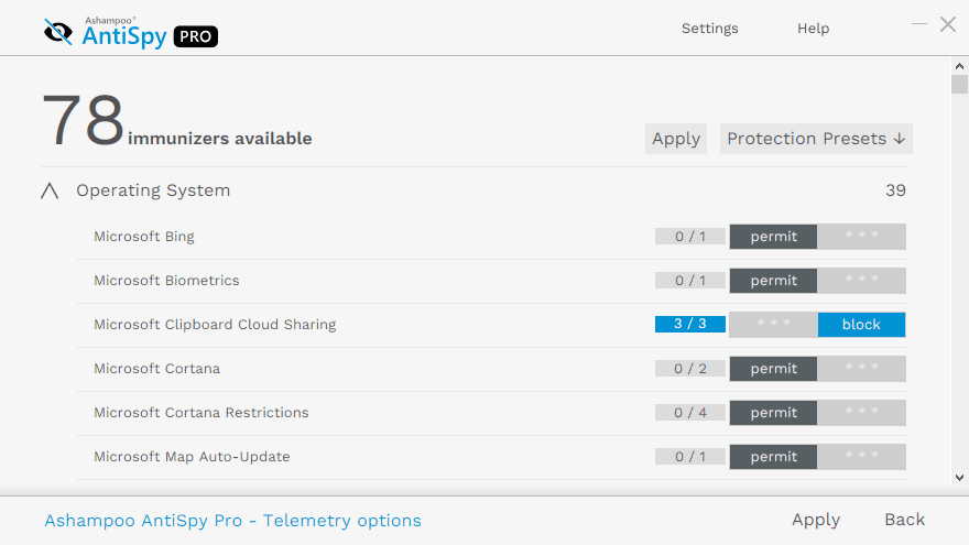 Windows 10 is known as a telemetry hog for a reason. Telemetry data helps Windows get to know you and your habits better and allows Microsoft to adapt both comfort features and ads to your preferences–unless you put a stop to it! Other programs from Google or search engines like Bing track your every move and collect massive amounts of data for the creation of complex user profiles. Ashampoo® AntiSpy Pro prevents the sending of telemetry data in over 100 places with just one click! Regain control and protect your privacy on Windows 10, Windows 8 and even Windows 7 PCs!