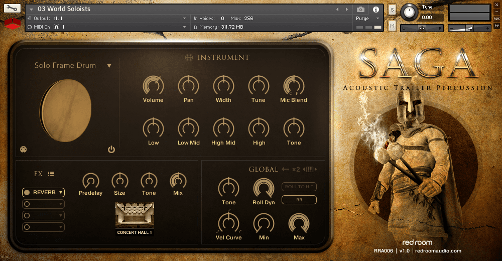 SATP features a broad range of deeply sampled instruments and articulations recorded on a scoring stage, including orchestral and world drum ensembles, world drum soloists, cymbals and gongs, oil drums, anvils and a plethora of large metal slams and crashes. Also included are field recordings of giant silos, metal doors, machinery, tools and various small metals. There are over 110 instruments in total and the easy-to-use Kontakt GUI offers plenty of performance and sound shaping options that allow you to customize Saga to suit your compositions.