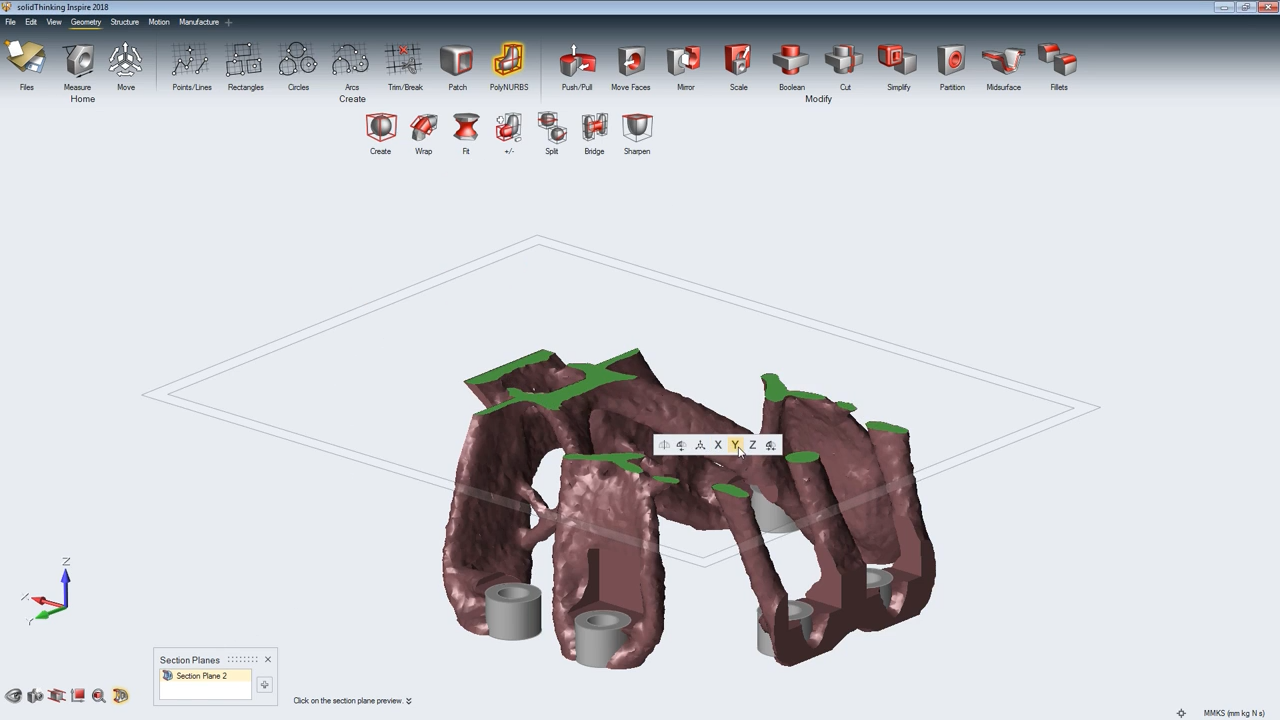 Inspire enhances this process by generating a new material layout within a package space using the loads as an input. The software is easy to learn and works with existing CAD tools to help design structural parts right the first time, reducing costs, development time, material consumption, and product weight.