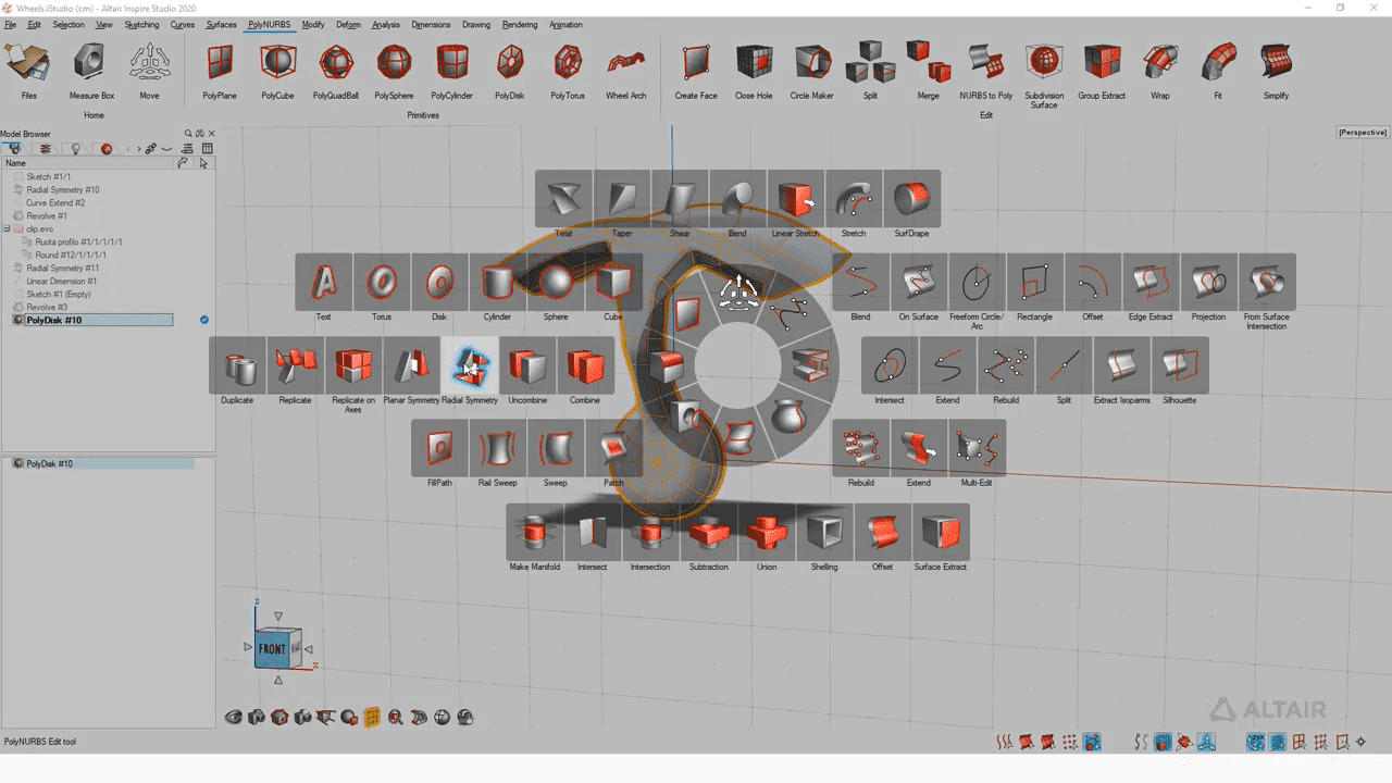Inspire Studio speeds up the design of free-form surfaces. We can use our initial sketches, alternate render styles, and create real-time photorealistic renderings. Studio is suitable for creating organic surfaces, parametric body models and NURBS based surface and body models. One of its specialties is the ConstructionTree model history feature.