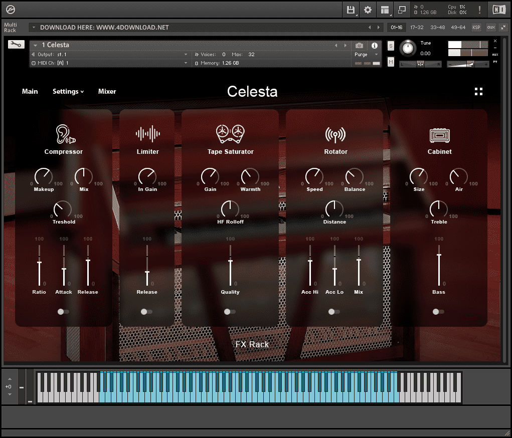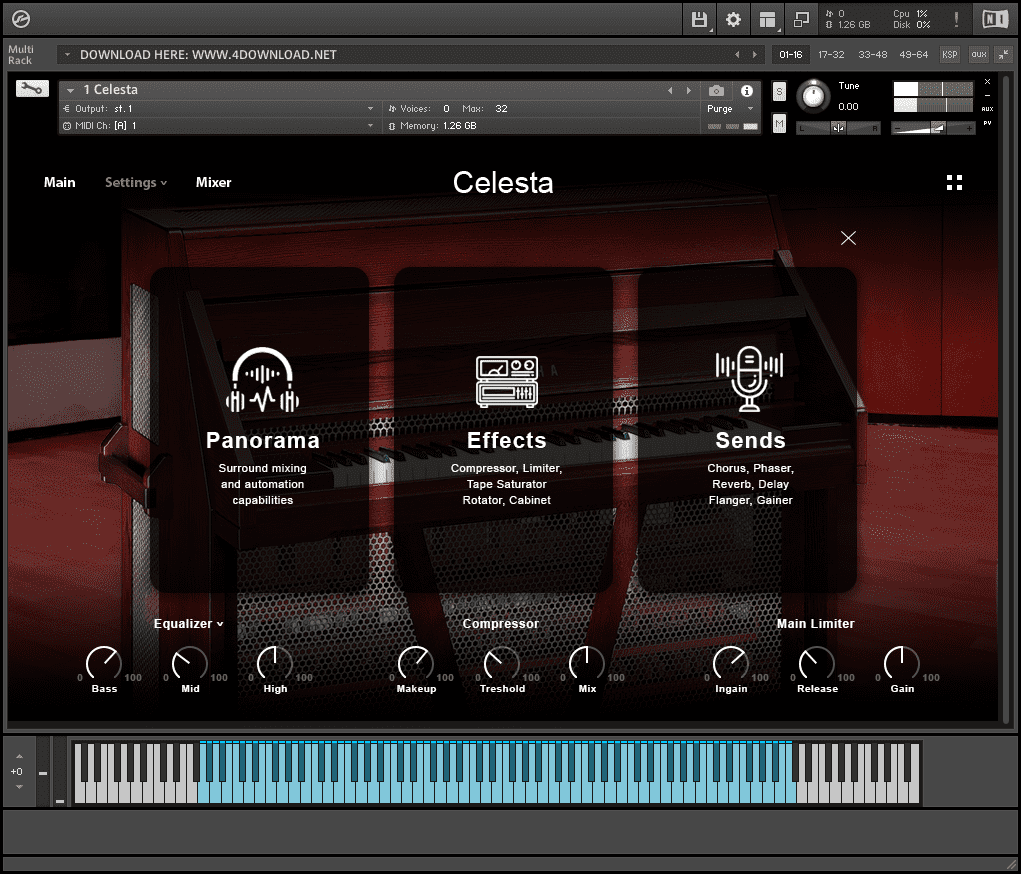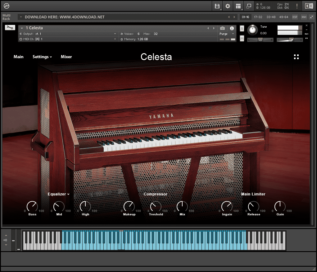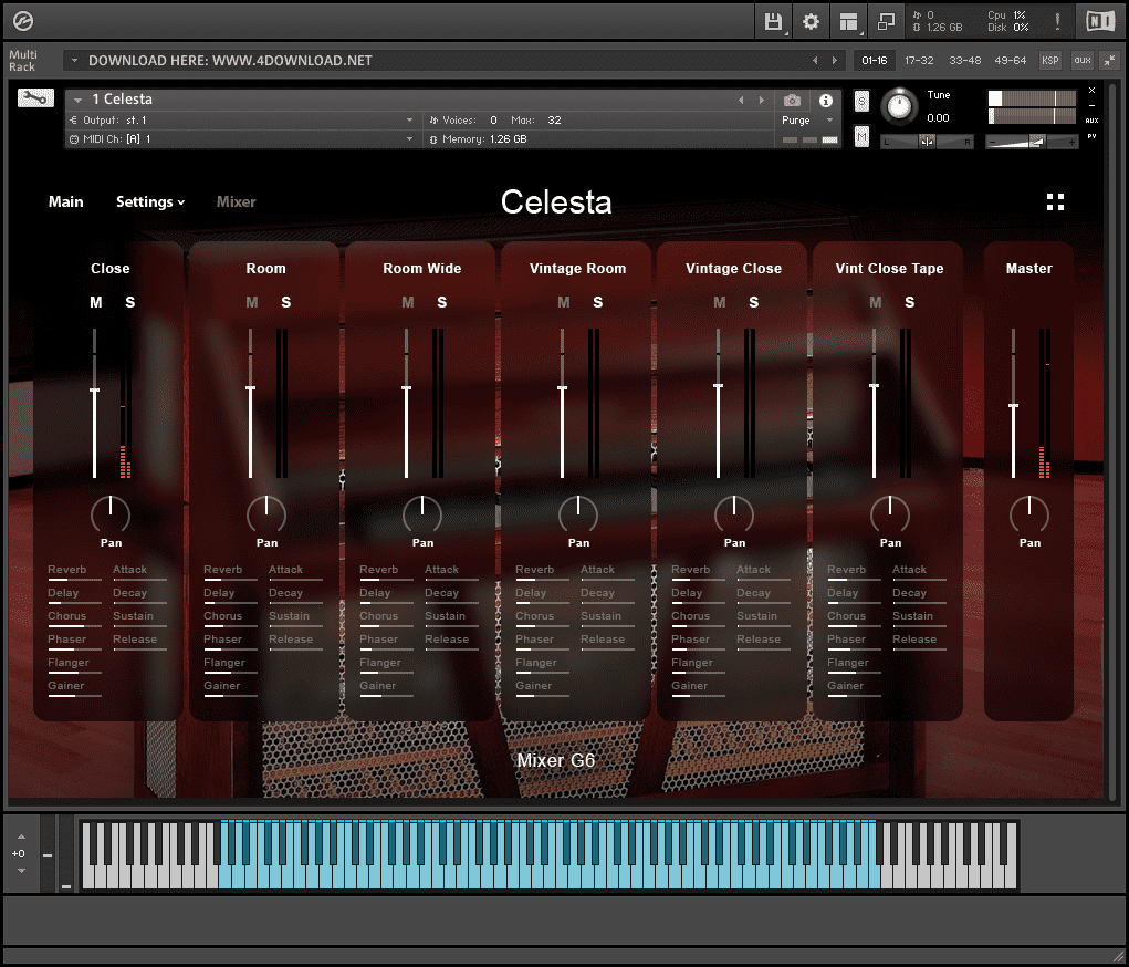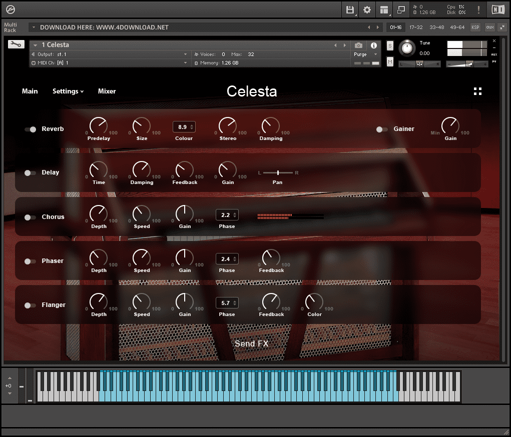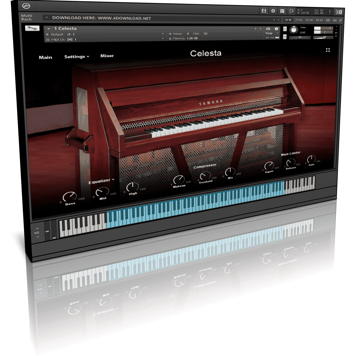 Complete collection of Classic Yamaha Celesta & Hybrid Sounds. You have a total of 45 source sounds to explore, transform, combine and create your own. Sound Browser and 9 channel Mixer for changing sound and fx settings on each sound source. Instrument Main Effects: delay, chorus, algorithmic reverb, phaser, gainer and flanger.