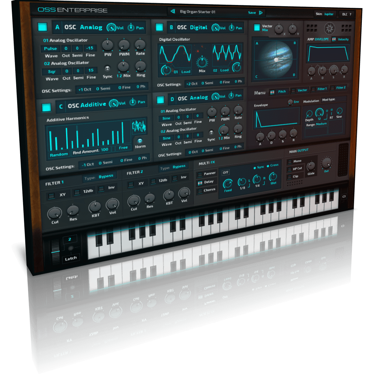 OSS Enterprise is a hybrid Synthesizer exploring Vector, Additive, Subtractive & Wavetable synthesis. Enterprise is multifaceted instrument with great versatility, it offers 4 groups of oscillators with many options and sonic approaches. Enterprise comes packed with hundreds of factory presets and a excellent sound quality.