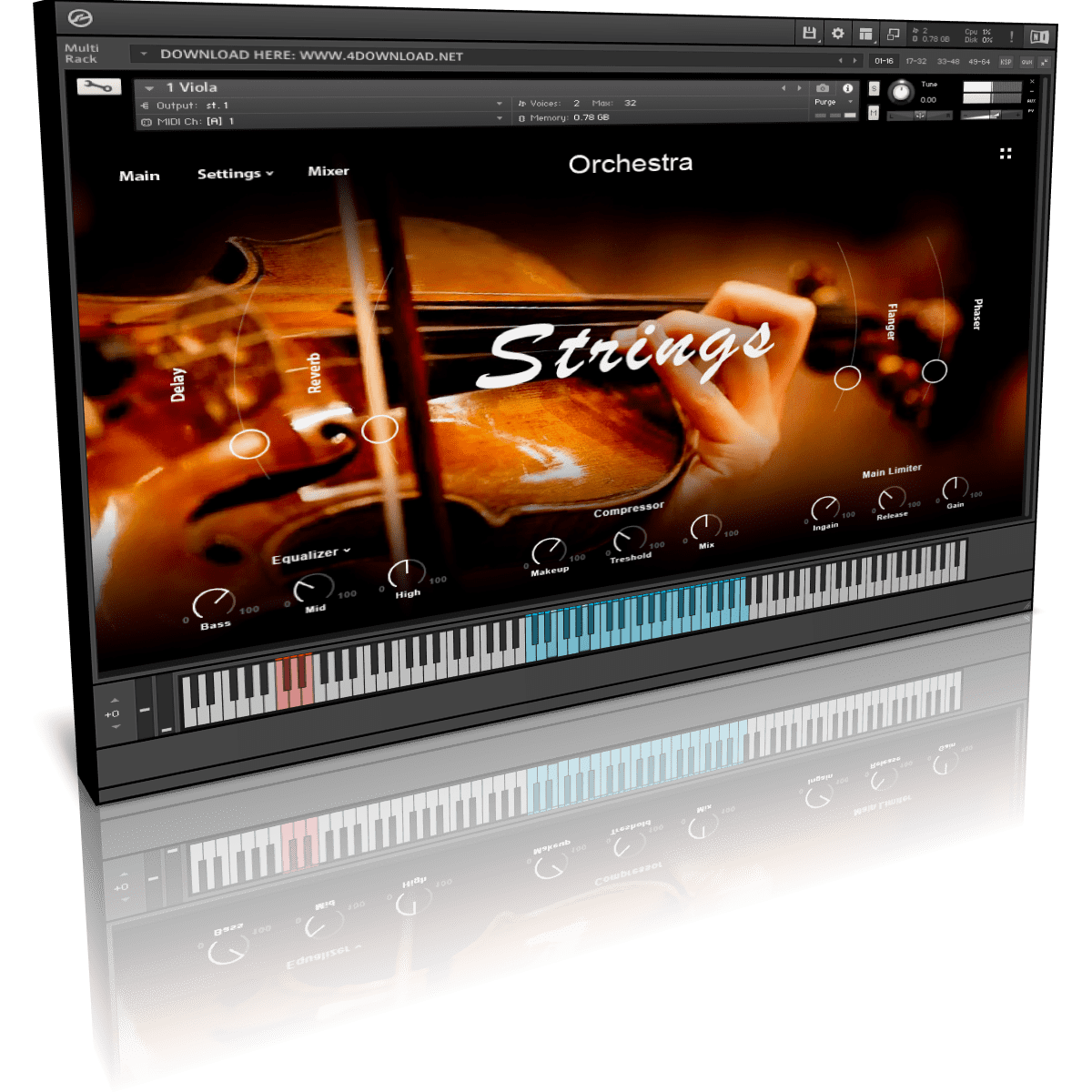 Complete collection of Super Realistic Solo Strings. You have a total of 45 source sounds to explore, transform, combine and create your own. Sound Browser and 9 channel Mixer for changing sound and fx settings on each sound source. Instrument Main Effects: delay, chorus, algorithmic reverb, phaser, gainer and flanger.