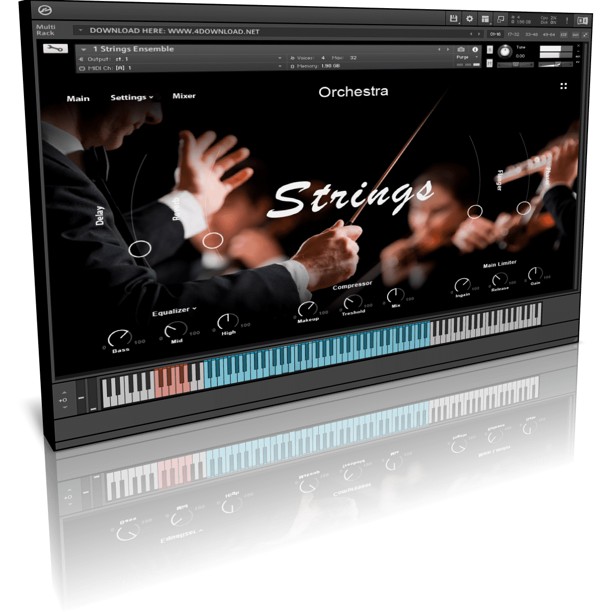 Complete collection of full orchestral strings ensemble. You have a total of 45 source sounds to explore, transform, combine and create your own. Sound Browser and 9 channel Mixer for changing sound and fx settings on each sound source. Instrument Main Effects: delay, chorus, algorithmic reverb, phaser, gainer and flanger.