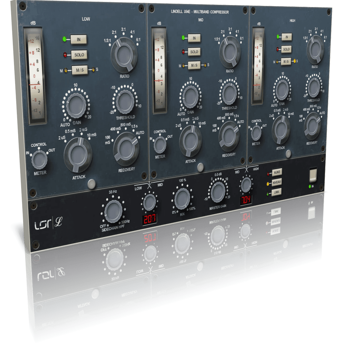 The Lindell 354E is a multi-band model of the most famous vintage diode bridge compressor, the Neve 2254E. Precisely replicating its distinctive behavior and rich sonic character in each of its three bands. But in practical use, the 354E really is two compressors in one: Turn on its Nuke mode to radically shape individual tracks, and turn it off for lighter, more nuanced compression when mastering or for surgical mixing. Both modes yield the same lush coloration and smooth presence that made the 2254E one of the most revered and highly sought after compressors in the world.