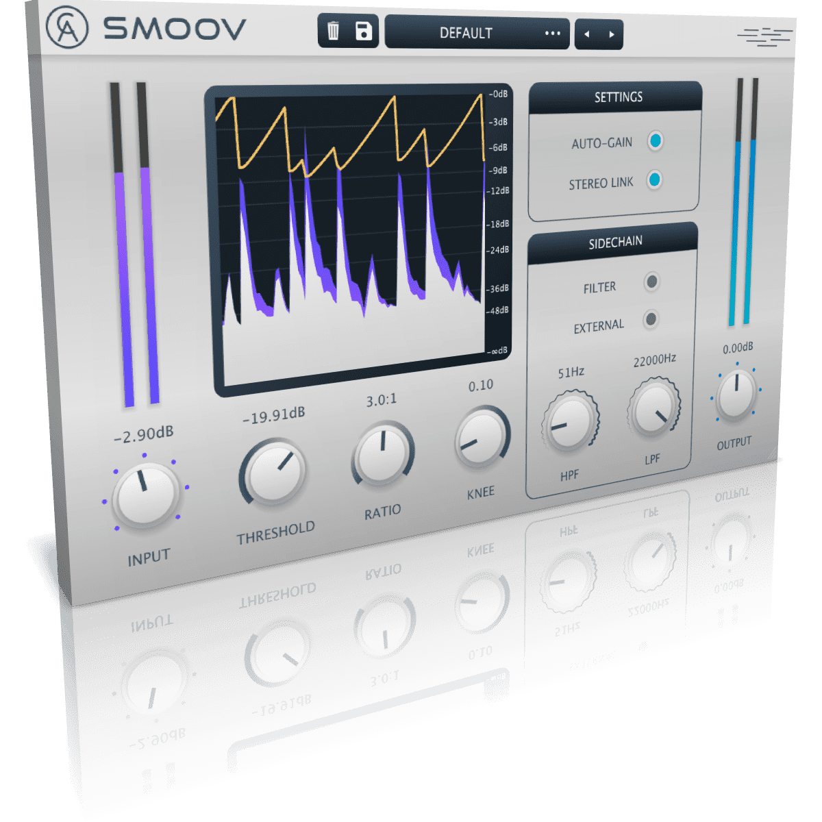The compressor uses a program-dependent envelope influenced by old hardware making the compression sound smooth and dynamic. The peak detection means that Smoov detects the actual amplitude of a signal, resulting in an extremely fast response to tame and control anything that is thrown at it.