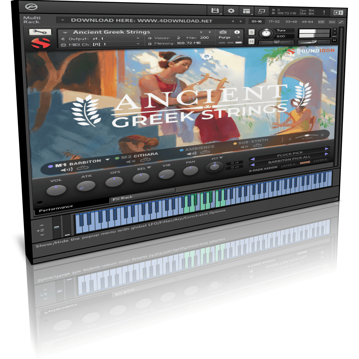 Ancient Greek Strings is a fantastic collection of 7 deeply sampled stringed instruments that delve deeply into the historic roots of Western musical traditions, stretching back thousands of years. This library features a Barbiton, Cithara, Lyre, Goat Horn Lyre, Pandura, Phorminx and Trigonon. Crafted of wood, gut and goat skins, these classic musical artifacts capture the sound and spirit of classical Greek civilization at its height. The influence they have had on modern harps, guitars and zithers is clearly audible and plain to see in these faithful reconstructions. Each piece was hand-crafted by master craftsman Panagiotis Stefos of LyrΑvlos in Athens. Stefos and his team played each instrument, all recorded in exquisite detail by producer John Valasis, with 8 round-robins and 4 dynamic velocities per string.