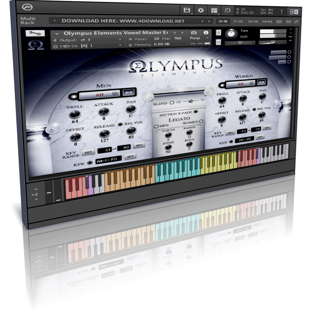 Olympus Elements is a powerful choral instrument for Native Instruments Kontakt Player, Komplete Kontrol and S-Series Keyboards that puts the core functionality and raw sonic power of our massive 63-voice Olympus Symphonic Choir into a compact and easy-to-use interface, with rich features, dynamic playability and brilliant acoustics. This Powered-By-Kontakt library is designed for everyone, whether you're just beginning your musical career or are a seasoned professional. If you want a glorious sounding, efficient and user-friendly choir without sophisticated lyrical phrasing or solo content, this is the virtual instrument you've been waiting for.