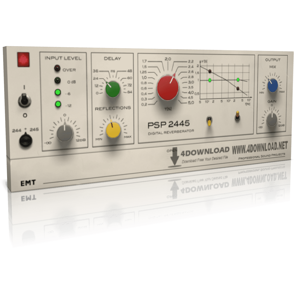 PSP 2445 EMT is a reverb processor plug-in (VST, AAX and RTAS for Windows; AudioUnit, VST, AAX and RTAS for Mac OSX) inspired by two legendary early digital age reverberators: the EMT® 244 and the EMT® 245. PSP thoroughly researched how to bring the specific features of those simple, yet very musical sounding reverbs to life as a plug-in. We then improved from the originals with a handy set of parameters to control details of the sound and mix the reverb not available in the original hardware. The PSP 2445 is capable of processing using one selected engine or both of them simultaneously.