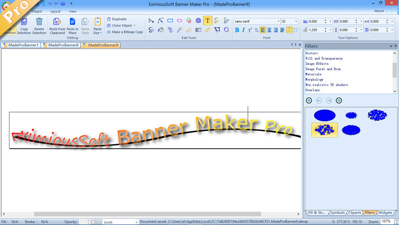 Banner Maker Pro supports each vector object can be filled or stroked with solid color, gradient and pattern. Moreover, The Banner program has over 200 filters built in. By Applying filters on designs, Banner ads looks novel, chic and visually impactful.