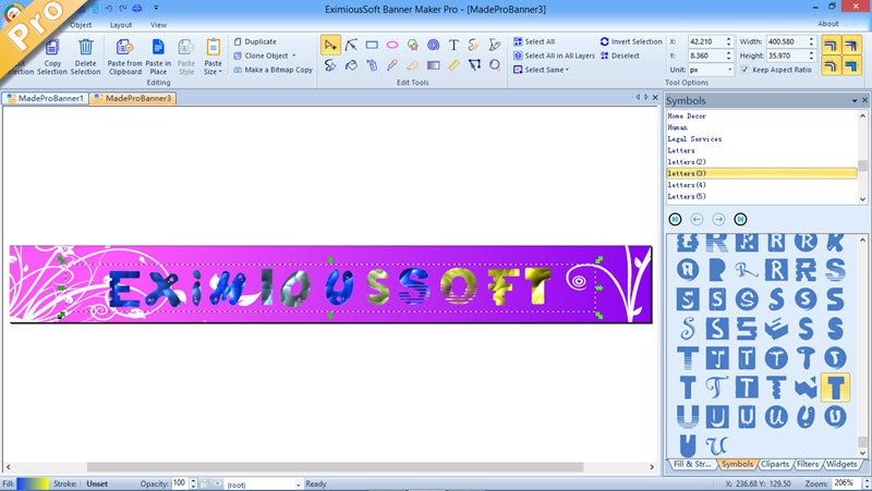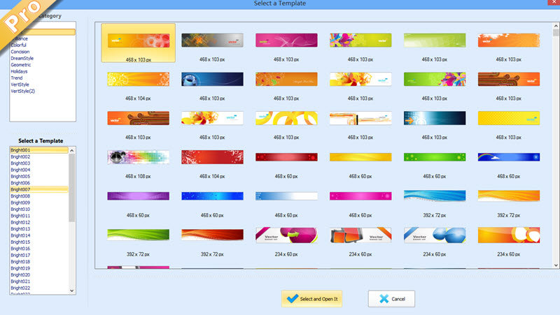 EximiousSoft Banner Maker Pro - The banner application runs as a great graphic-designed program for creating web-based or printable banner ads. It is a full featured with good design tools and fast way to build high quality banner images, provides a WYSIWYG interface for manipulation of vector graphics, allowing you to express yourself freely. The program offers high quality 400+ ready-made professional banner templates, 500+ pre-designed clip arts & 5000+ vector symbols and amazed rendering filters. All of them help you to create stunning business banner ads for printing with high resolution. By it, you can visually design any web-based banners, buttons, headers etc. graphics and supports to save as SVG/EPS/PDF/EMF/WMF/PNG etc. file format.
