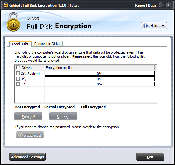 The application has a user-friendly interface and doesn't require constant attention. No additional skills are required to use this software. GiliSoft Full Disk Encryption don't erase your drive when encrypt and can guarantee your computer security, privacy and complete data protection from undesirable access.