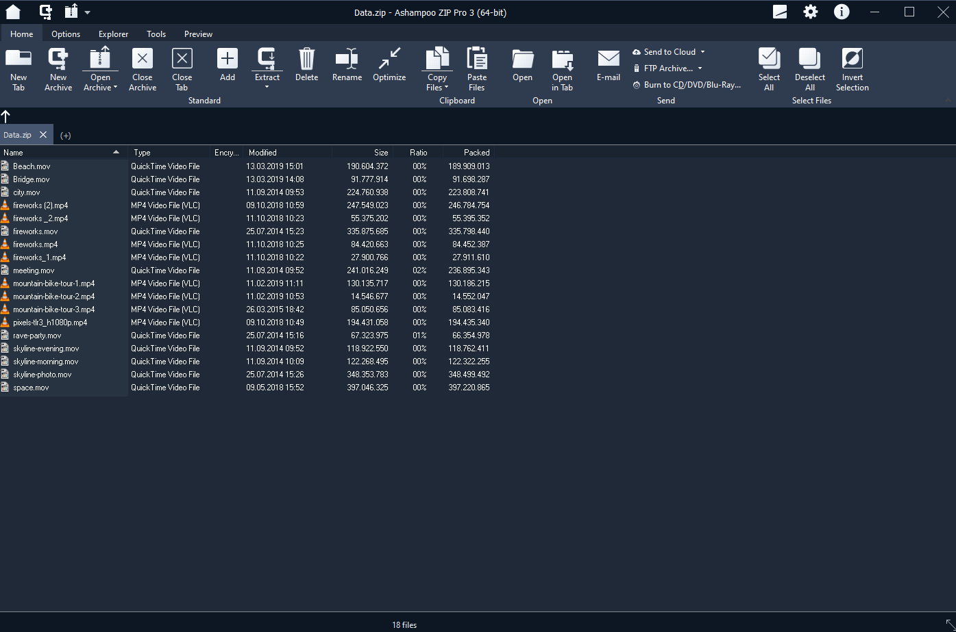 Ashampoo ZIP Pro 3 sets new standards in compression gains! The program automatically picks the best codec for any given file type and achieves up to 70% better compression than the competition, even outclassing market leaders when it comes to PDF, DOCX and PNG files.