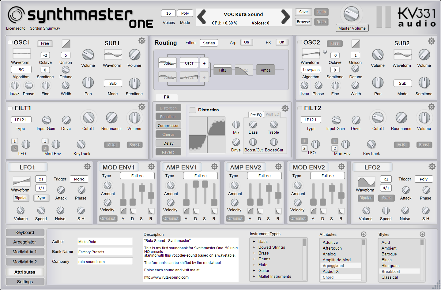 - 1250 Factory Presets: SynthMaster comes with 1250 factory presets from a world class team of sound designers: Arksun, BigTone, Michael Kastrup, Rob Lee, Umit ‘Insigna’ Uy, Ufuk Kevser, Aiyn Zahev, Frank ‘Xenox’ Neumann, Teoman Pasinlioglu, Nori Ubukata, Gercek Dorman, Vorpal Sound and Brian ‘Xenos’ Lee.