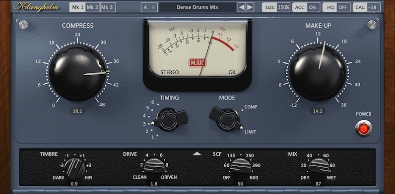 MJUC is the most effortful Klanghelm plugin to date. It took almost two years of extensive, dare I say "excessive", research and development. To create MJUC I've researched and analyzed each and every variable-mu* implementation I could get my hands on to get the best of tube compression into a single processor. In order to do the diversity of this compression topology justice, three different models have been built. These are kind of a time travel though the history of tube compression to capture the essence of each generation. Each model has its own dedicated signal path and dedicated control set. If desired you can tweak the overall tone and saturation of each model with the unique TIMBRE and the DRIVE control. DRIVE controls the load of the input and output transformers as the saturation of the tube gain stages, if applicable. The TIMBRE extends MJUC's use as a tone shaping device.