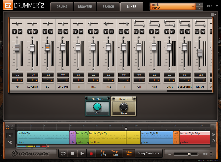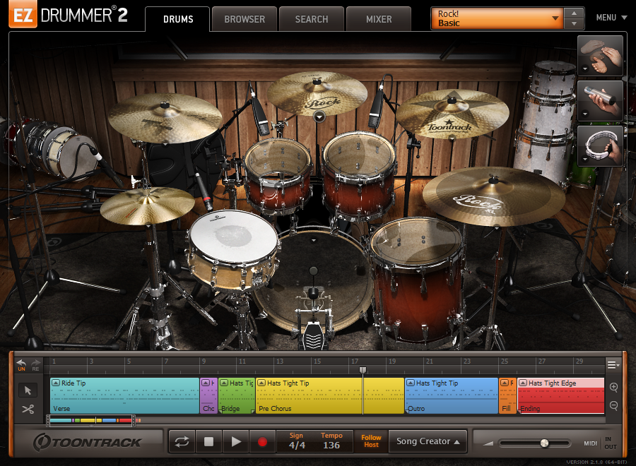 The Rock! EZX comes with eight custom drum kits based on selections from the near infinite Toontrack sound vaults, featuring rare and vintage drums recorded over the past decade in renowned studios like New York’s Allaire Studios, Blackbird Studios in Nashville and 2 Khz Studios in London. All sounds were handpicked and re-mixed through various outboard chains as well as layered with engineer Neil Dorfsman’s (Bruce Springsteen, Bob Dylan, Dire Straits) personal collection of samples.